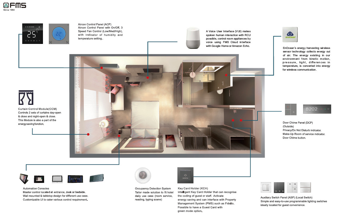 - Allow guests to effortlessly control lighting, temperature, curtains, and more with user-friendly interfaces.
